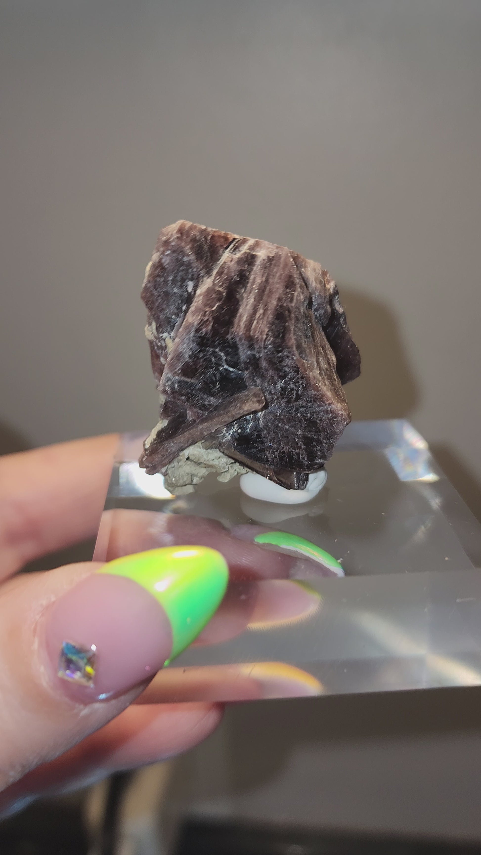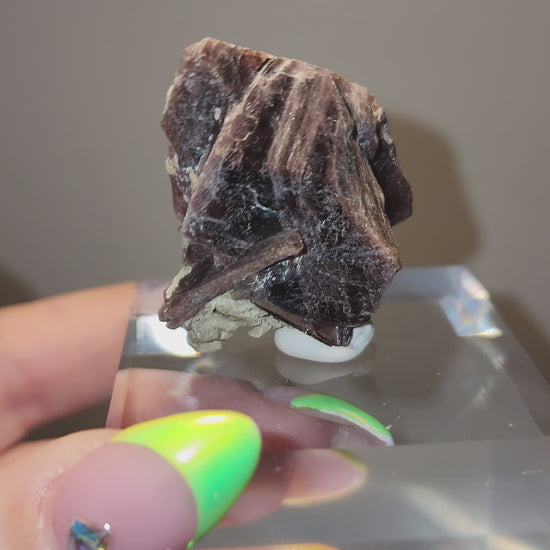 Axinite is a rare borosilicate mineral typically found in metamorphic zones where intense heat and pressure create its distinct structure. These specimens display exactly what makes Axinite so desirable: