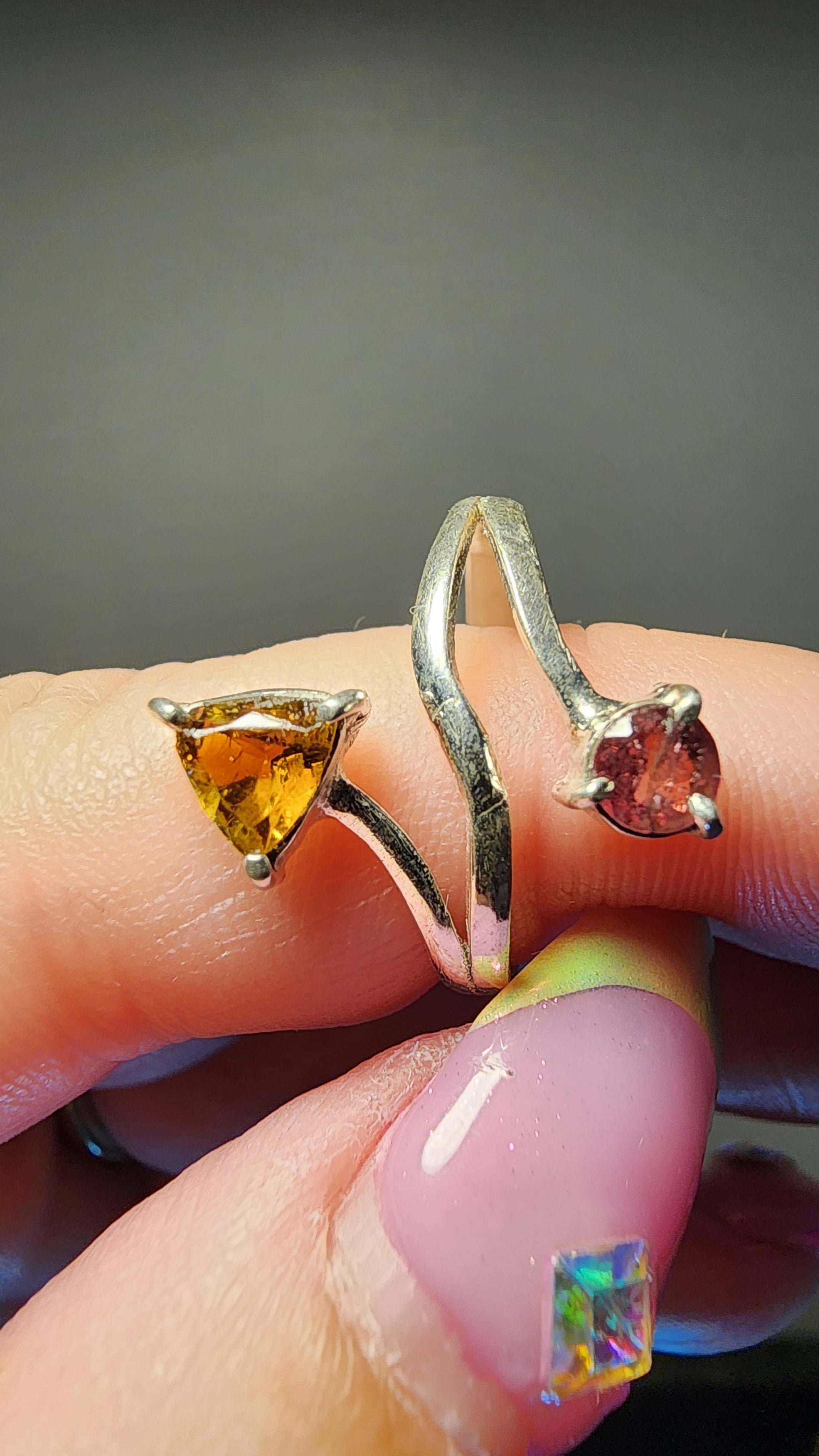Handmade 925 Sterling Silver Sphene and Rubelite Tourmaline Ring Sz 7