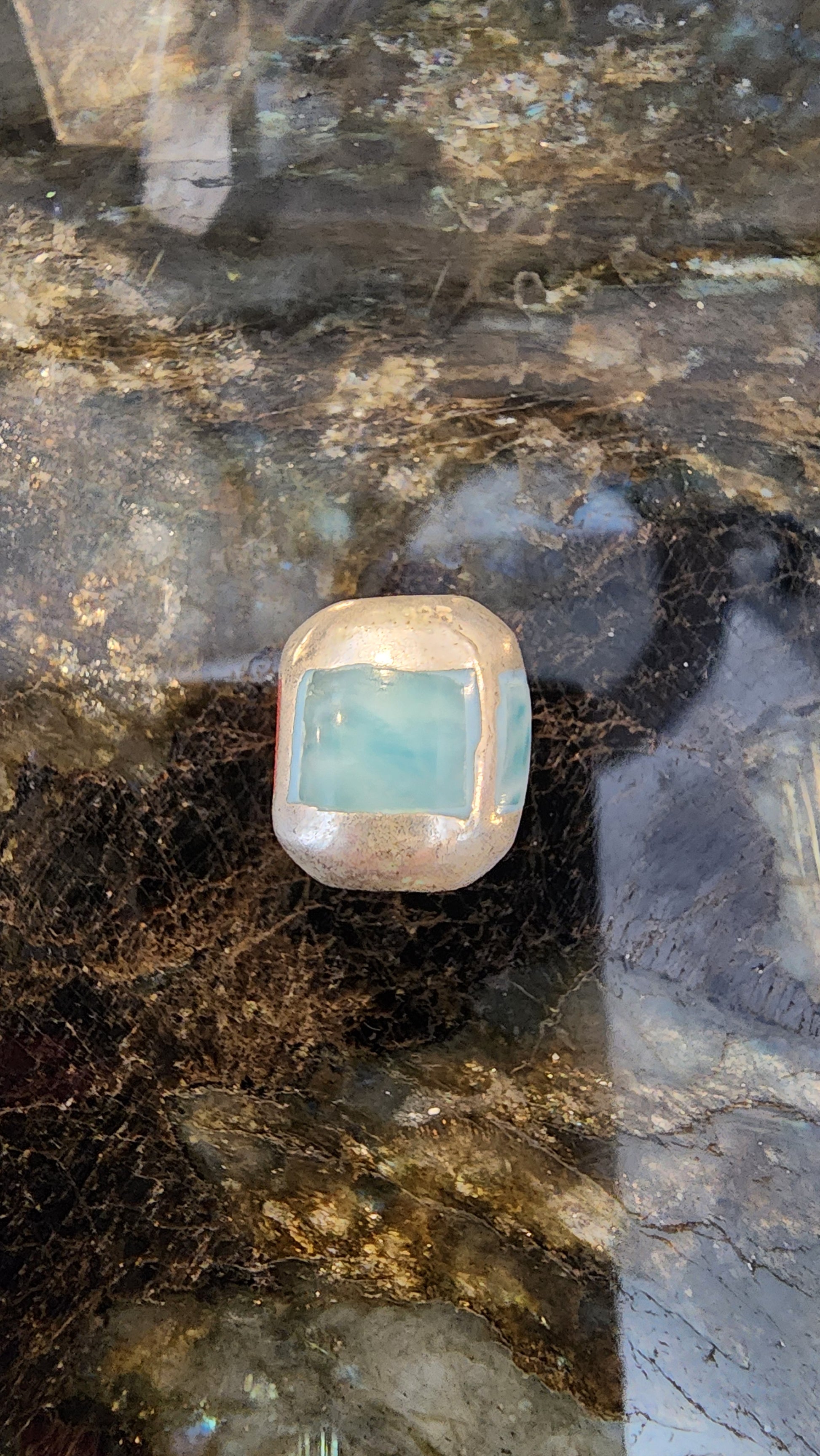 Hand-selected top quality larimar sourced directly from the mine in the Dominican Republic. Hand crafted 925 silver pendant. Unique seafoam greens you wont find in most larimar. This is the best of the best. Each stone in this new larimar collection was carefully selected insuring only the absolute best coloured gems were used.